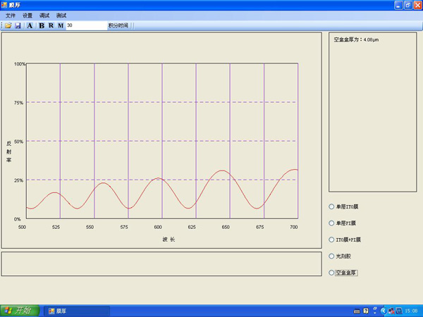 液晶膜盒厚测试仪可以测量单层、双层透明薄膜厚度和液晶盒间隙等参数。该仪器采用非接触测量方法,依据光学干涉原理,在计算机控制下进行数据采集和处理,具有测试速度快,精度高和测试过程自动化等特点。适用于在线检测工作的需要。数据可靠,符合研究成果鉴定要求,达到国际先进水平,液晶显示器的制造需经历十几道工序,期间涉及几十个关键参数,这些亘接影响其成品率。